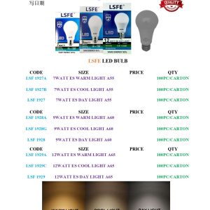 3.PAGE 95F(E) LSFE LED BULB 7W 9W 12W ES