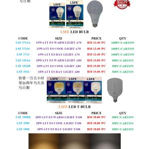4.1.PAGE 95O(E) LSFE LED BULB 15W 18W ES & 28W T-BULB