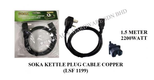 SOKA 2200WATT KETTLE PLUG CABLE COPPER 1.5METER (LSF 1199)