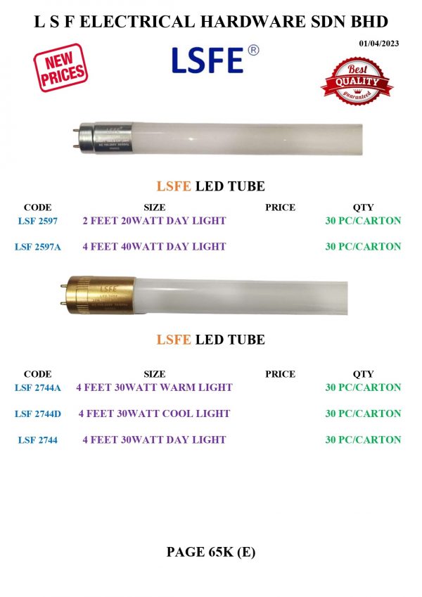 LSF 2597 | 2 FEET 20WATT DAY LIGHT | 30 PC/CARTON | ||||