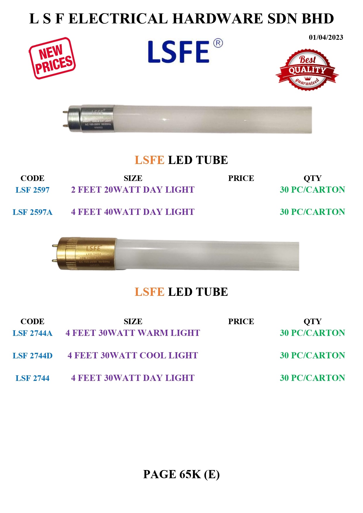 LSF 2597A | 4 FEET 40WATT DAY LIGHT | 30 PC/CARTON | ||||