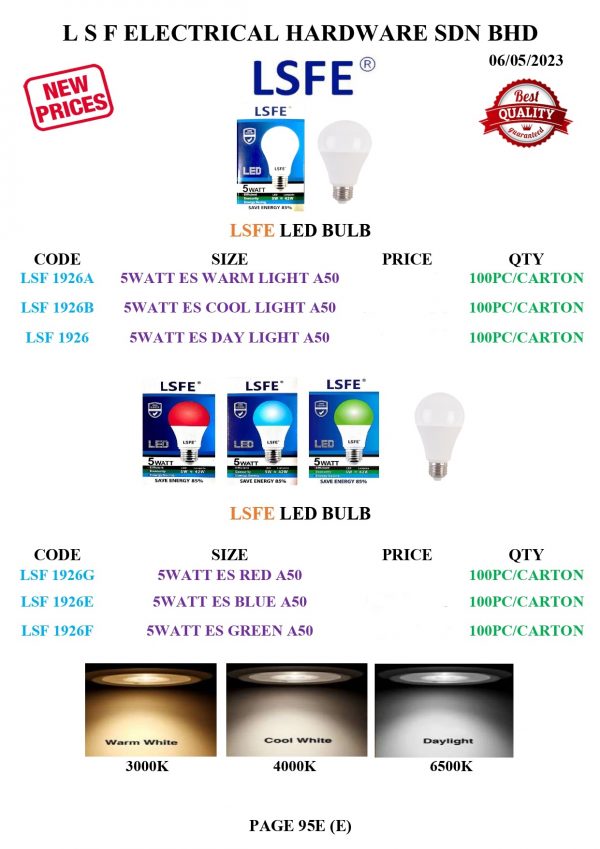 LSF 1926 5WATT ES DAY LIGHT A50 100PC/CARTON