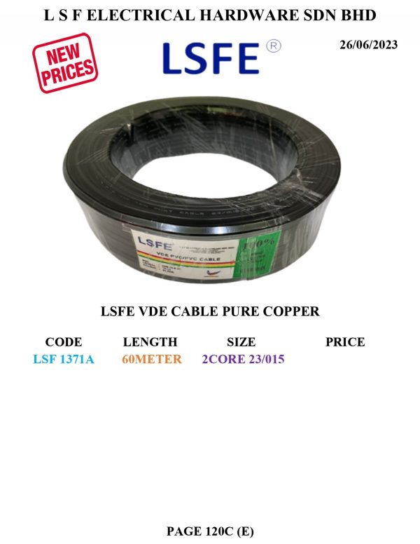 Home / CATALOGUE - ELECTRICAL / 225.PAGE 120C(E) LSFE VDE CABLE PURE COPPER