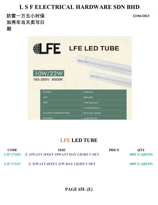 LSF 2724N | 足 22WATT 4FEET 22W DAY LIGHT C/SET | 30PC/CARTON |