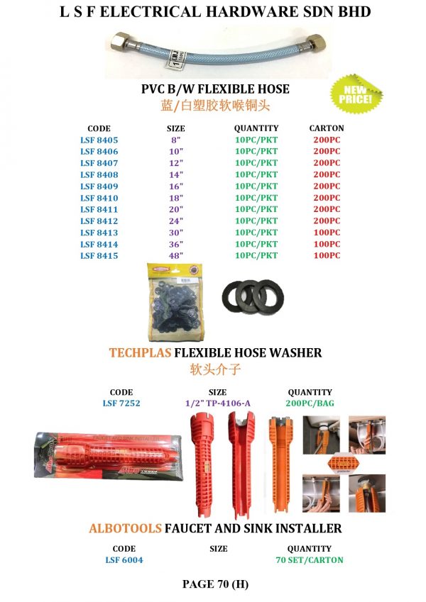 27.PAGE 70(H) BLUE WHITE FLEXIBLE HOSE & FLEXIBLE HOSE WASHER & ALBOTOOLS FAUCET