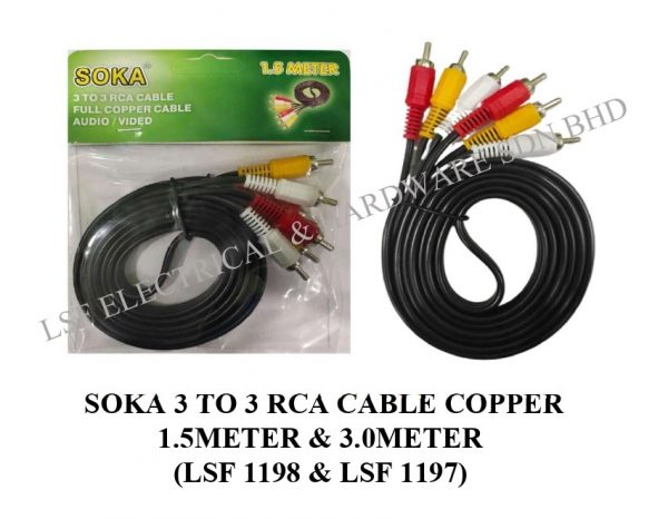 SOKA 3 TO 3 RCA CABLE COPPER 1.5 METER (LSF 1198) 10 PC / BAG 120 PC / CTN