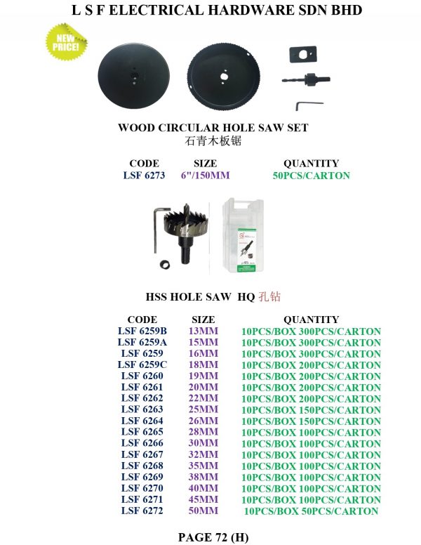44.2.PAGE 72(H) WOOD CIRCULAR HOLE SAW SET & HSS HOLE SAW