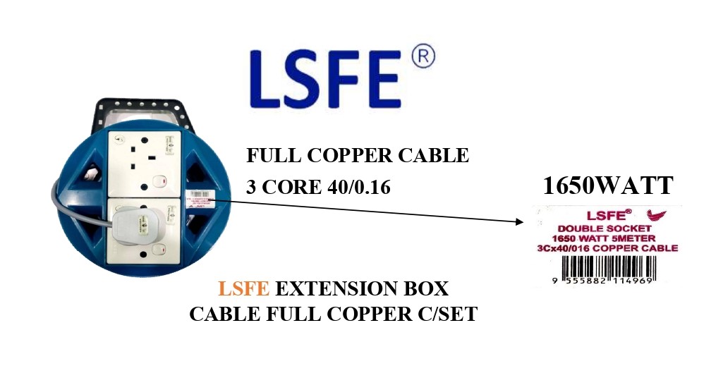 Home / EXTENSION BOX & TRAILING SOCKET / LSFE DOUBLE 1650WATT EXTENSION BOX CABLE FULL COPPER C/SET